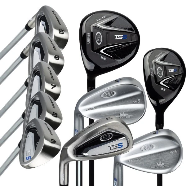 Clubs are engineered for intermediate to advanced players in a 10 Club Hybrid Iron Set. This TS5 set features Graphite Shafts in the Woods and Steel Shafts in the Irons and Wedges for a more stable feel. Stand bags, DD Putters, Driver, 3-Hybrid, 4 Iron, and Spin Tech Wedges are also available to add to this set by purchase, or through 6th Club Free.