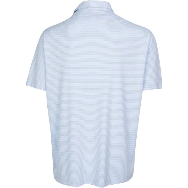 Oxford stripe interlock has PlayDry Technology which is a leading moisture management system that wicks perspiration away from the skin and transports it to the garment’s outer layer so it an evaporate into the air. You stay cool, dry and comfortable. UPF 50+ give added sun protection.