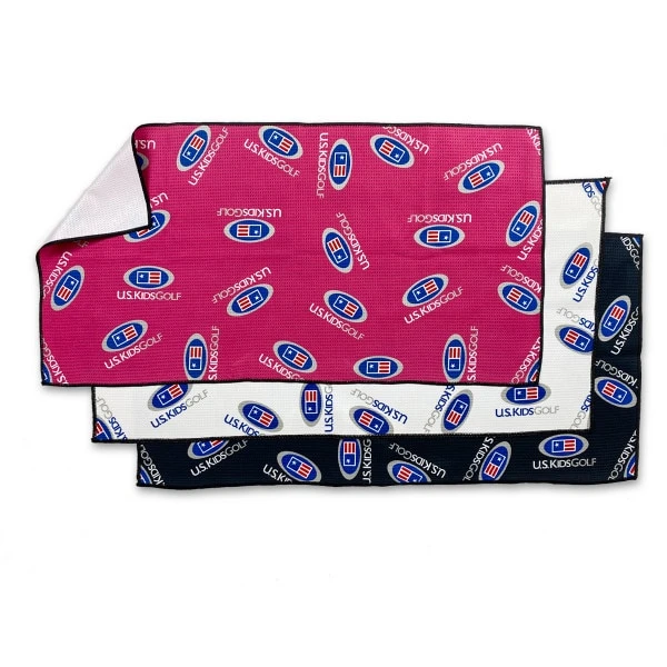 Ultra-absorbent microfiber towel that is lightweight and has a convenient strap to loop over a club in your golf bag. It measures 16 inches x 32 inches and fits most stand bags without dragging the ground.